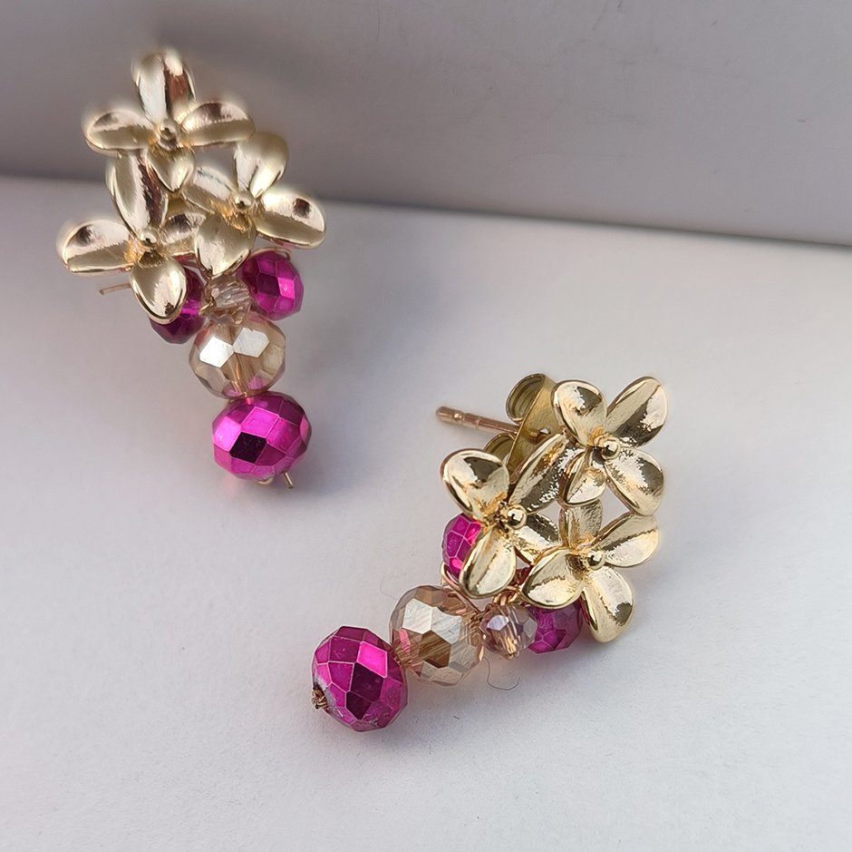 Brincos da linha cerimónia, em tons dourado e rosa. Com base e espigão em metal, banhado a ouro de 18kl. Bordados com cristais swarovsky facetados.